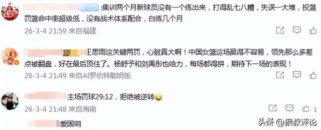 中国女篮险胜巴西官媒被球迷狂刷:罚球29-12被质疑“爱国哨”